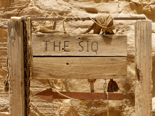 We had one shopping stop along the way that was disguised as a comfort stop. Lynda bought a cute top and had her scarf wrapped in the Bedouin style by a local. We also passed Wadi Rum desert which became famous in the old Lawrence of Arabia movie. We climbed to about 2000 ft. above sea level to the town of Wadi Moussa, which sits at the entrance to Petra (wadi=valley, moussa=Moses. It is said he traveled through this area at one time.)