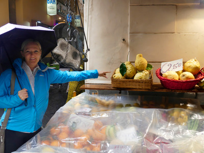 We were looking for a place to sit for a minute so we bought a couple of small cannoli at a pastry shop and ate them at a table out front under an awning. We also wanted to get a small bottle of limoncello to taste and take back to the boat with us. It won’t last long, but we got what we wanted.