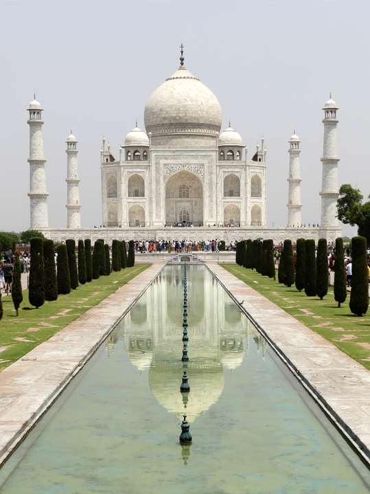 Ahhh, the Taj Mahal. What can I say? It literally took my breath away. There is an outer courtyard surrounded by a red brick wall, then you pass through a large gate to get to the famous white marble mausoleum. As we walked through the gate, the Taj was framed in the doorway. Wow! As we stepped out onto the lawn I was just blown away by the site in front of me. It was everything I was hoping it would be.