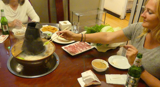 The hot pot was an experience. The food was good--and I’m really glad we did it--but for me, once was enough. My first clue as to what I should expect came right as we walked in the door and I saw a guy with his shirt halfway up his stomach, cooling off his body. There’s a reason it’s called hotpot! The place was packed, which is always a good sign, but unfortunately, China hasn’t fully adopted the no smoking in restaurants that we Americans have come to enjoy, and this place was no exception. Yuck.