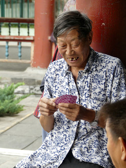 As we were headed into the temple area, we were drawn to a gathering of older people playing cards and games all along the walkway railing. They were having so much fun, and it was entertaining to watch them. When they would play a card, they wouldn’t just nicely set it down, instead, they would slam it down as if to say, “Take that!” Having Cassie with us was great as she was able to ask questions and interpret for us. It also allowed us to get some good people photos.